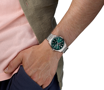 ディープグリーンのサンレイ加工サテン仕上げダイヤルを備え、自社製キャリバー TH31-02 ムーブメントを搭載したモデル。
