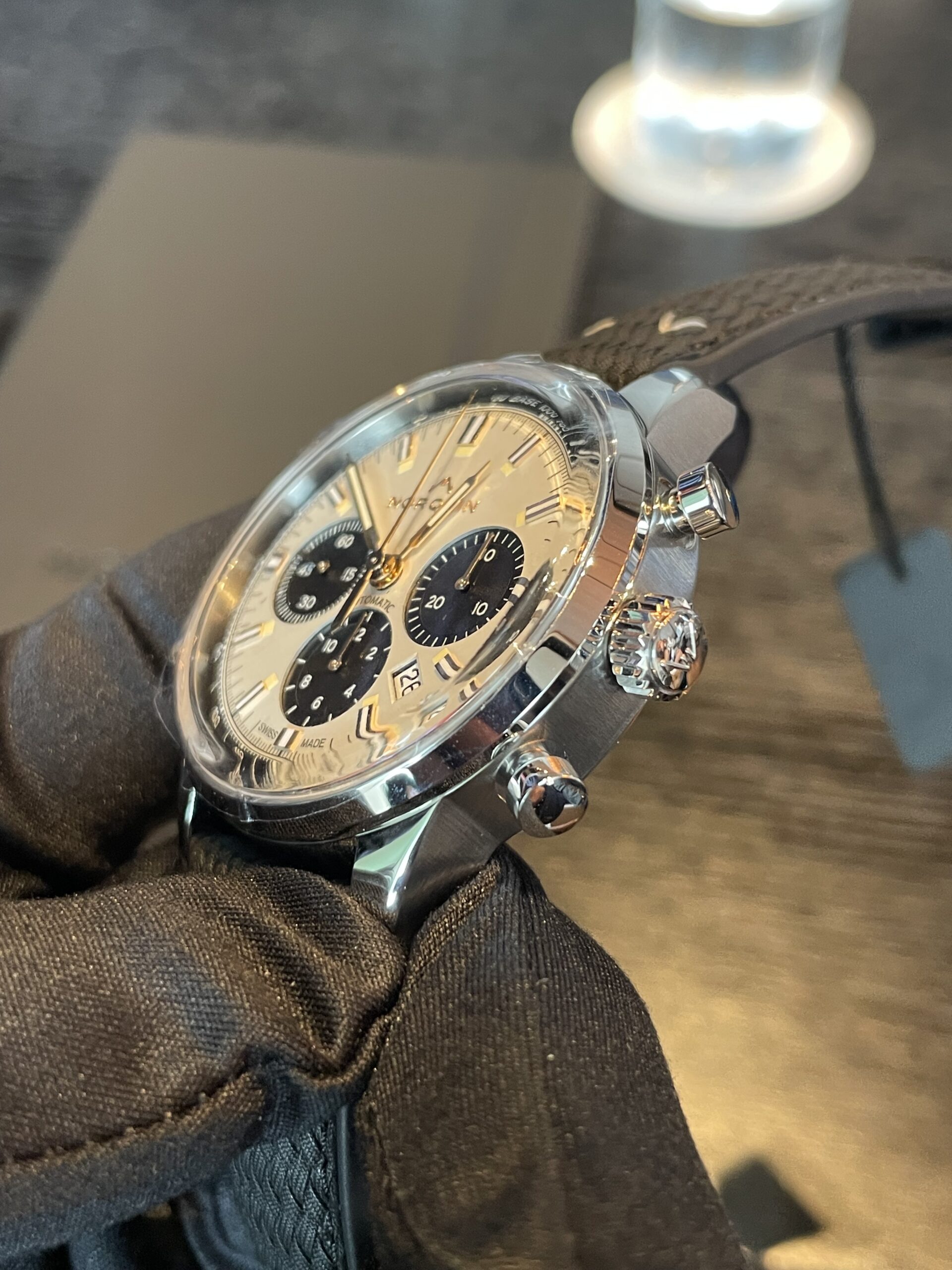 何も伝わらないのですが、43mmの大きさとパンダ文字盤の色合いがGOODで、非常に人気が出るだろうなぁ…と言った印象
