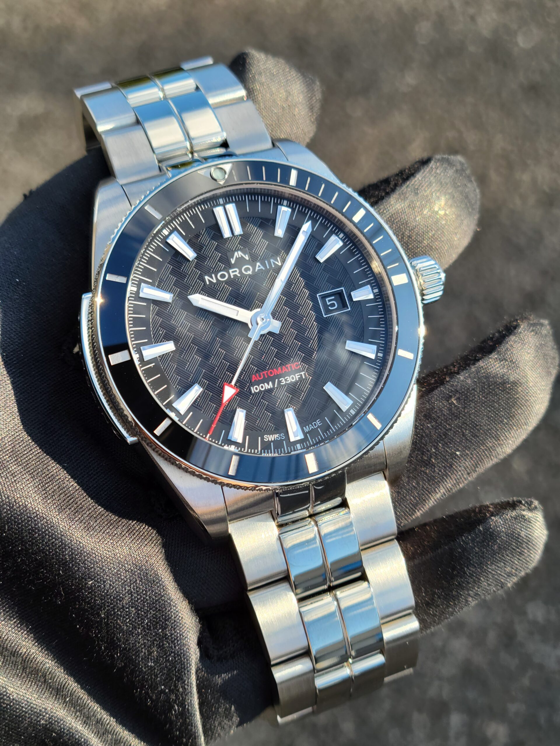 ☆ユニークな“ノルケインパターン”を施したブラックダイヤルと、ブラックのセラミックリングを備え、よりスポーティな印象を与えてくれます◎