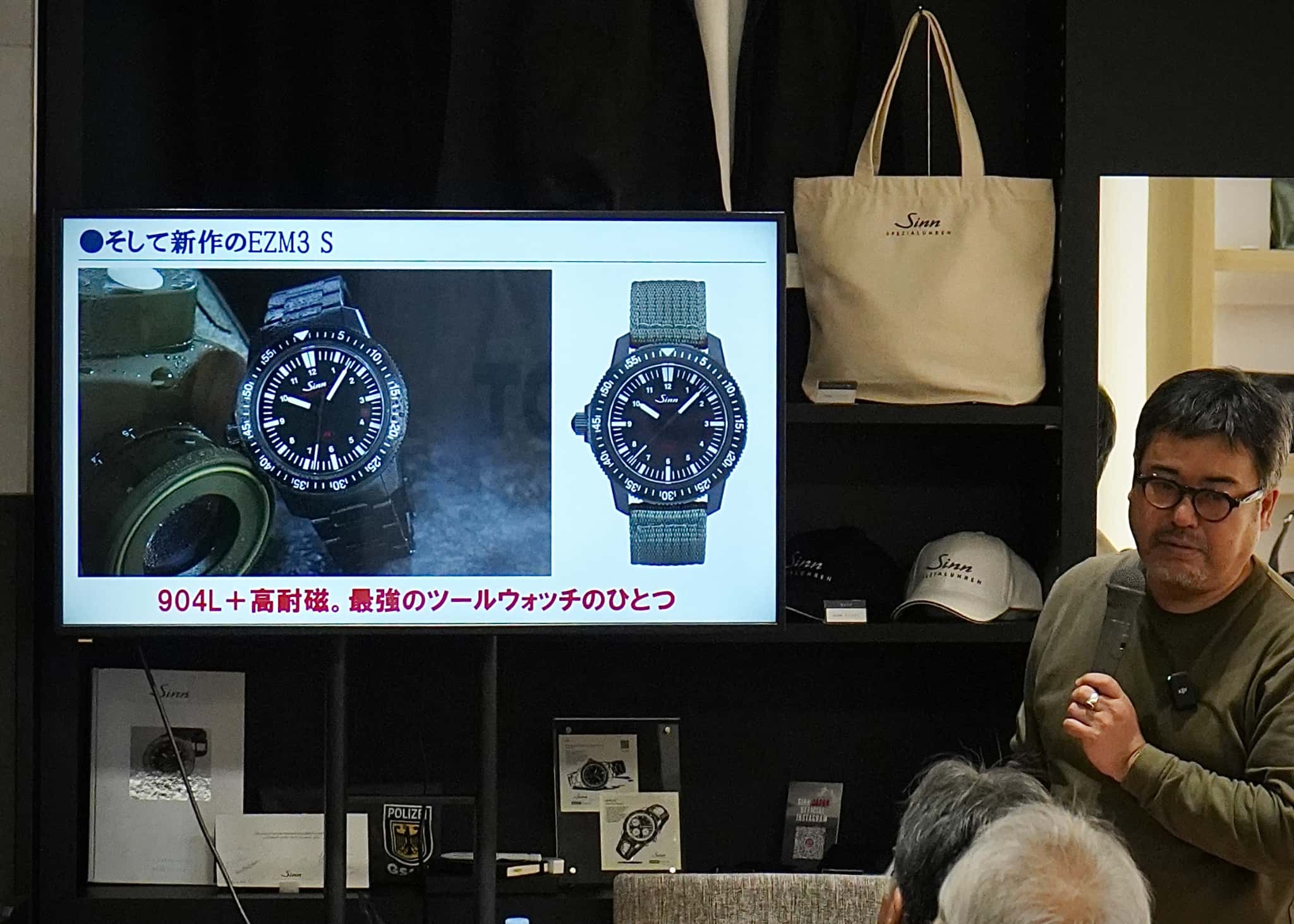 それから広田氏が注目する新モデルの紹介に移ります。個人的に推したいと話すのは「EZM 3 S」。ドイツ警察の特殊部隊のために開発されたハイスペック機、EZM 3をブラックハードコーティング(PVD)で染めた、言わば”最強のツールウォッチ”です。