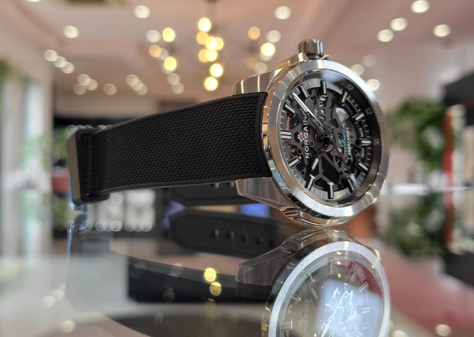 さて、今回ご紹介します時計は、メカメカしいスケルトン仕様が特徴的な“ノルケインウォッチ”