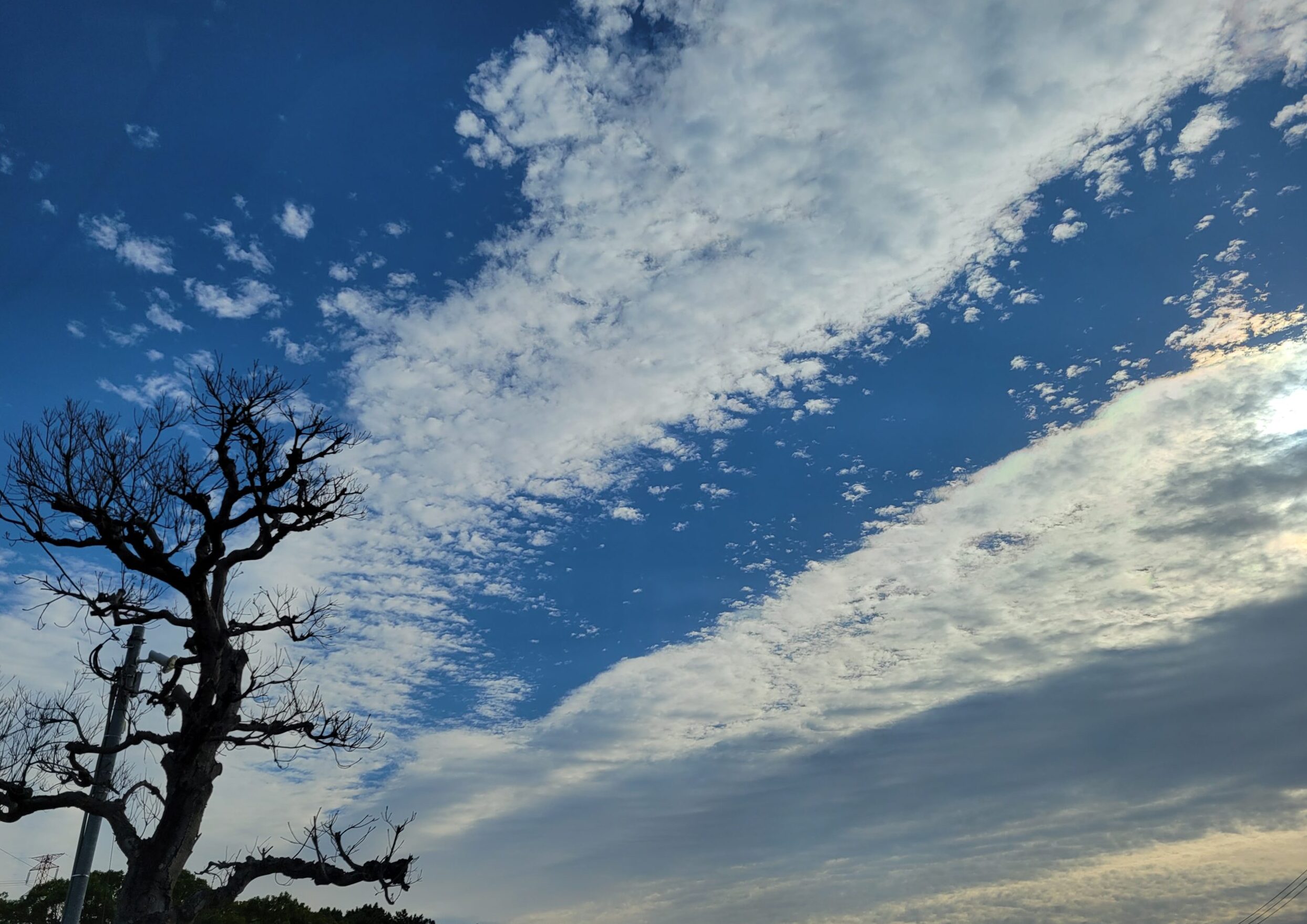 最近、朝空の雲が良い感じで…つい写真を撮ってしまいます。太陽の陽射しと様々な形の雲、色鮮やかな青空のコントラストが見ていて楽しいなと感じます。一期一会の空を眺めている時間が、私の癒しです。