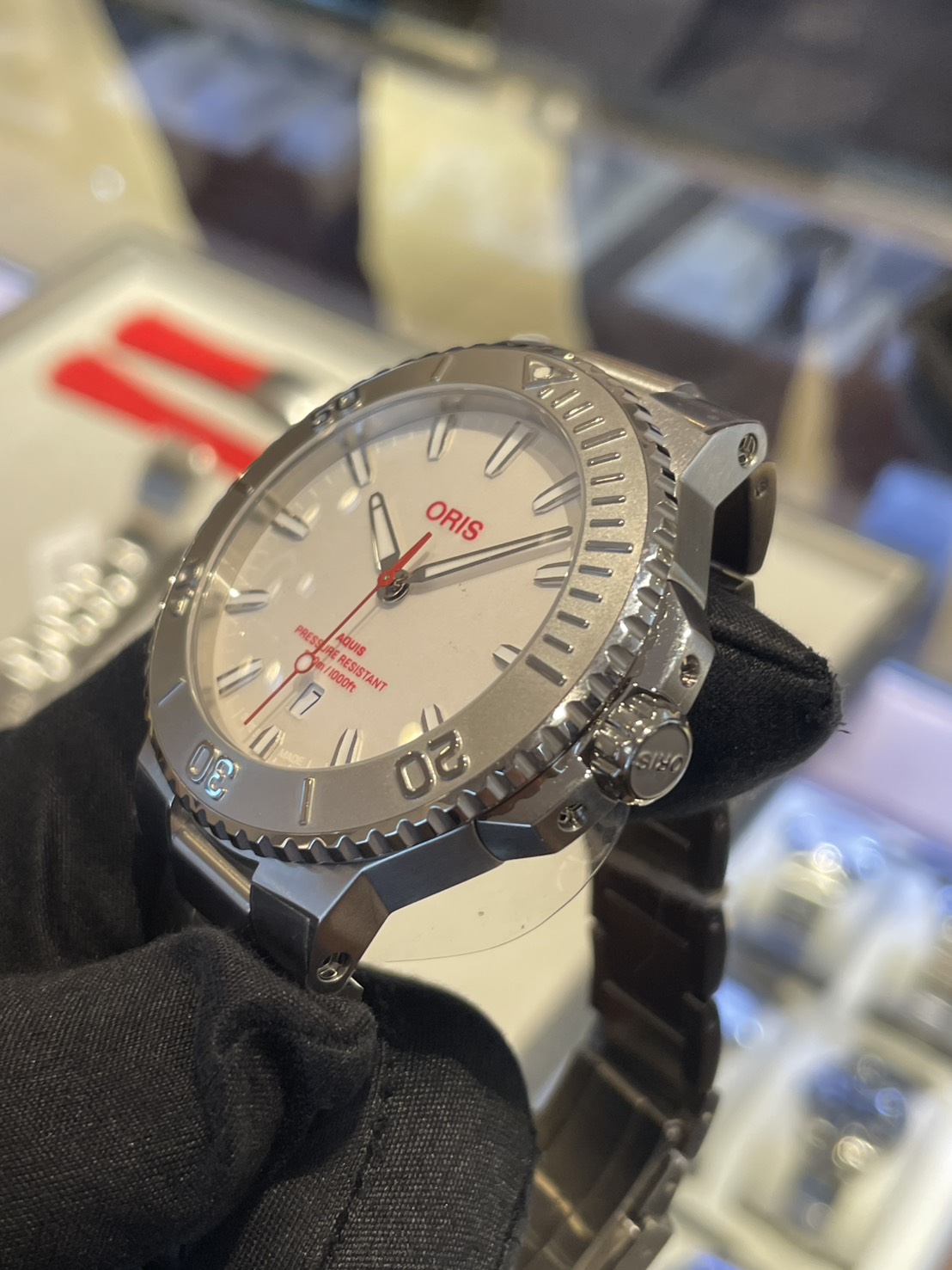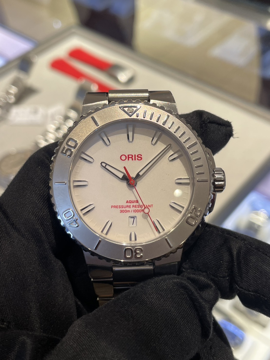 オリスのブランドロゴにカラーが入っている(通常は白か黒のロゴ)のもかなり珍しく、赤を差し色にすることで元気が出てきそうですね!