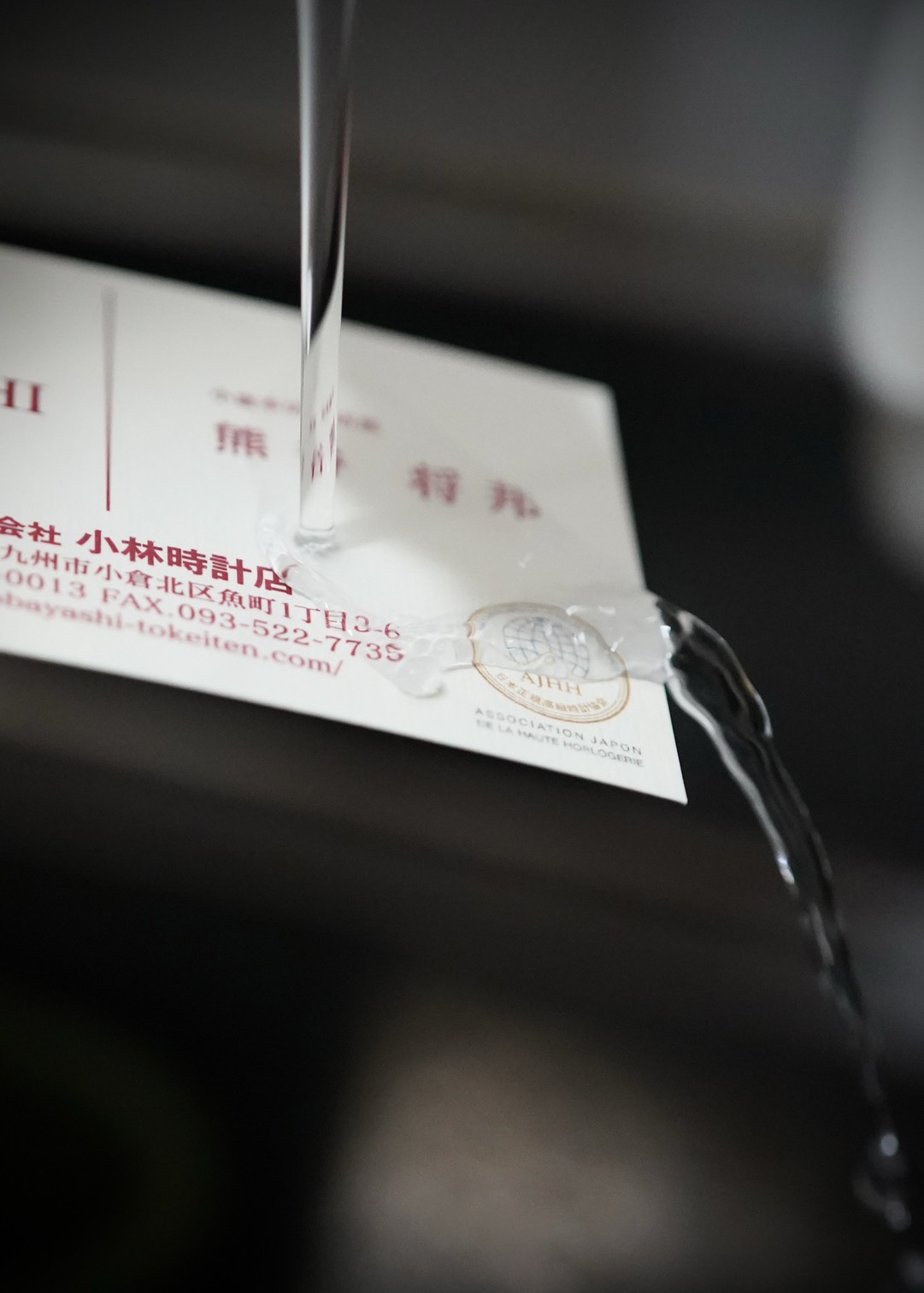 熊「時計は撥水するし、革ベルトも油分があるからある程度撥水はすると思うんですよね、、、その原理なら紙にもコーティングできるんやないですか?」と