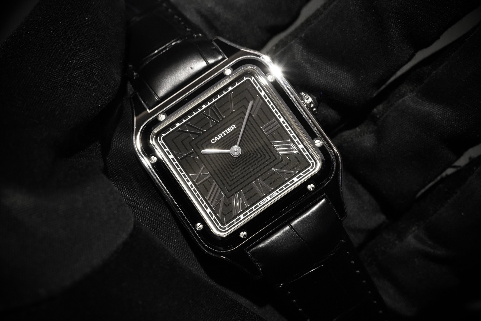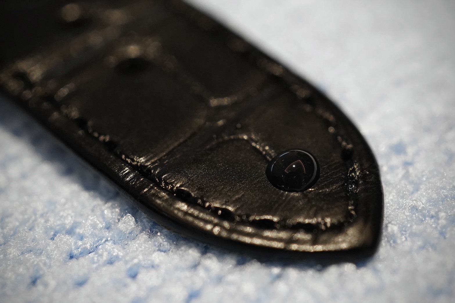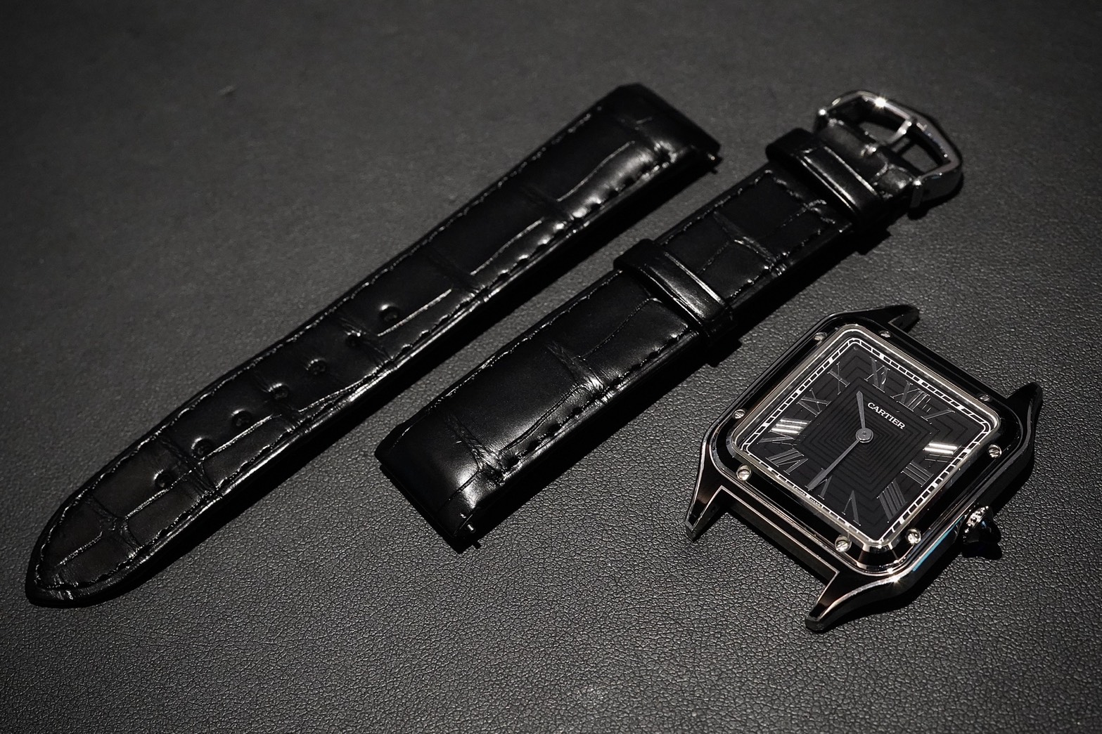 実際にこちらは朝礼時にデモンストレーションとして施工した、スタッフSさん愛用のサントスデュモン ブラックラッカー