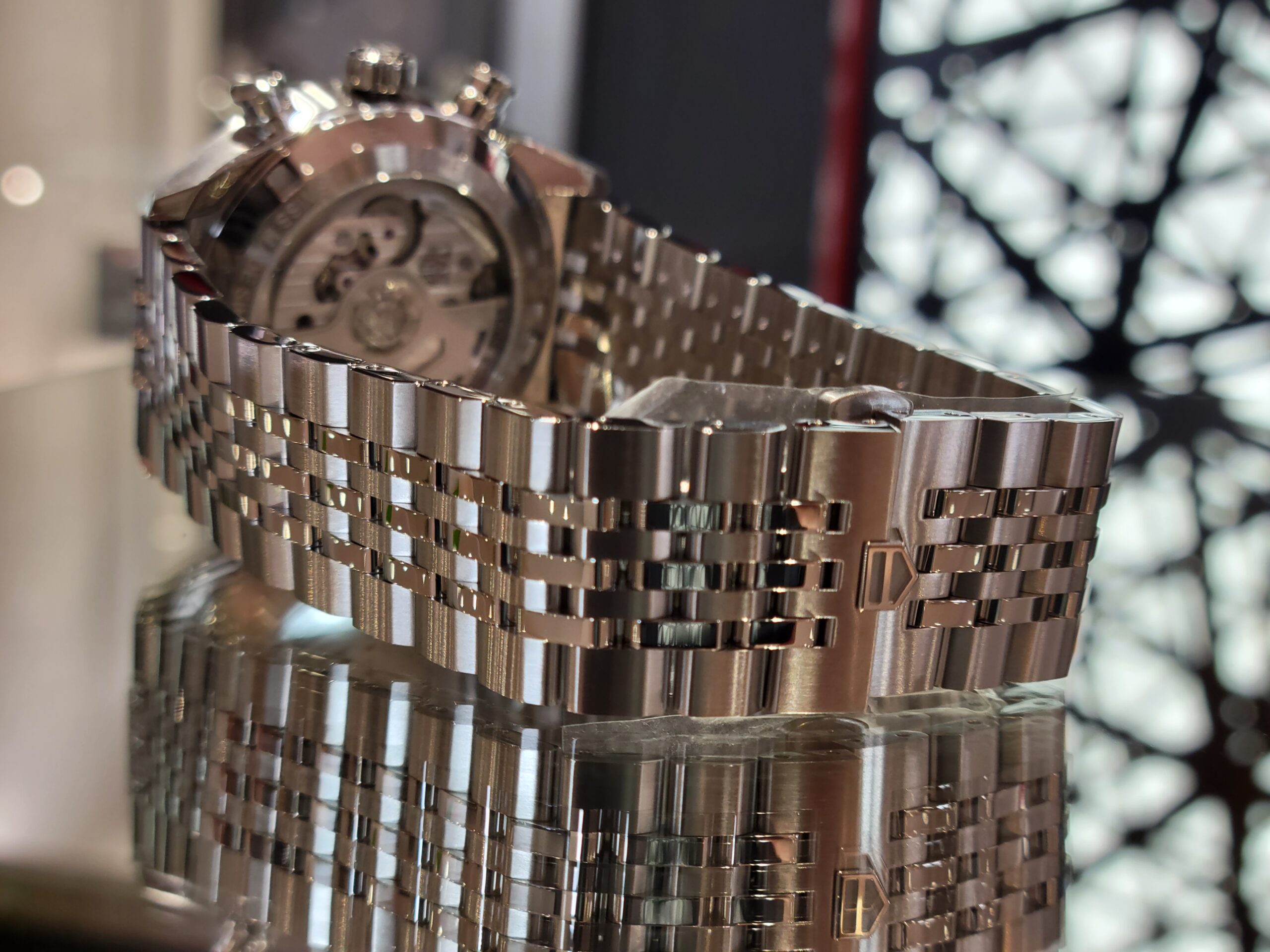 精度を追求して開発されたムーブメントで、双方向自動巻き上げ機構を搭載し、高精度で滑らかなクロノグラフを実現しています。