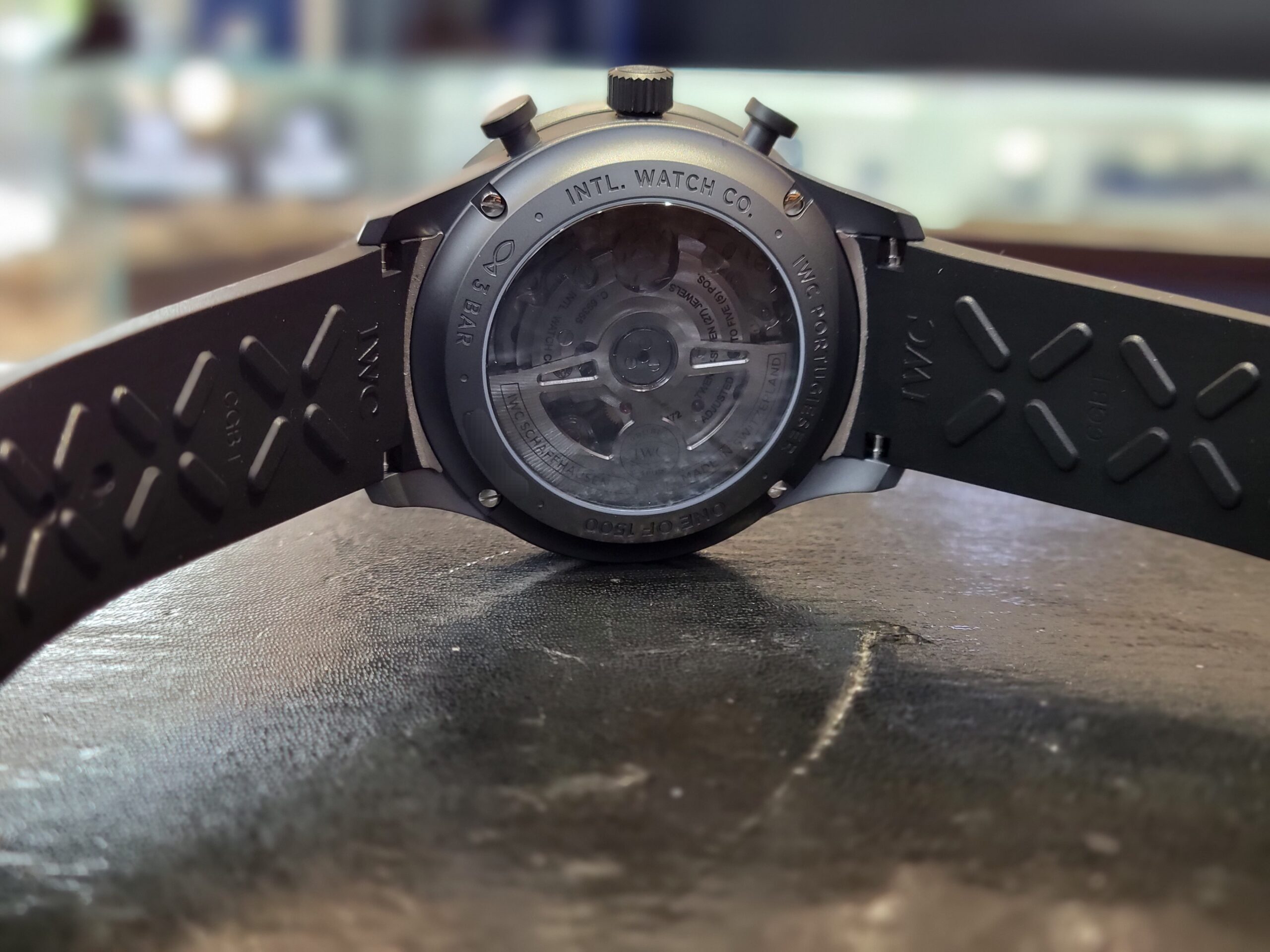オールブラック仕様のポルトギーゼ・クロノグラフ(セラタニウム)は、現在1本のみとなっております。