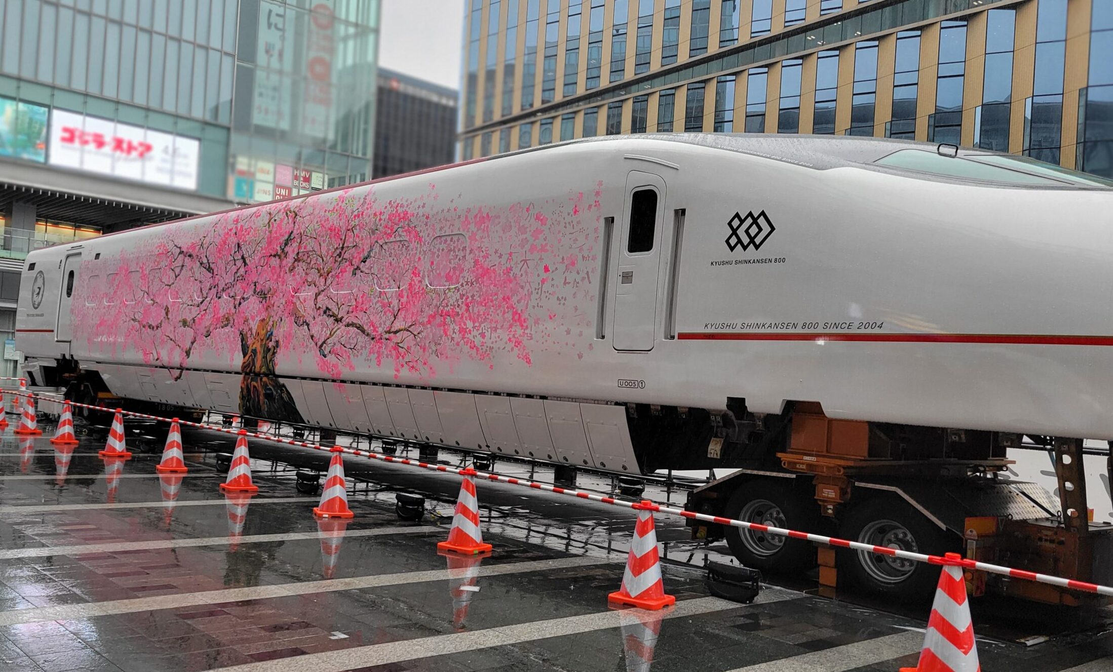 熊本地震で被災・脱線し修繕された九州新幹線「つばめ」の1号車。桜のペイントが見たく、タイミングよく見れたのが凄くラッキーでした。生憎の雨でしたが、貴重な車両が見れて良かったです☆
