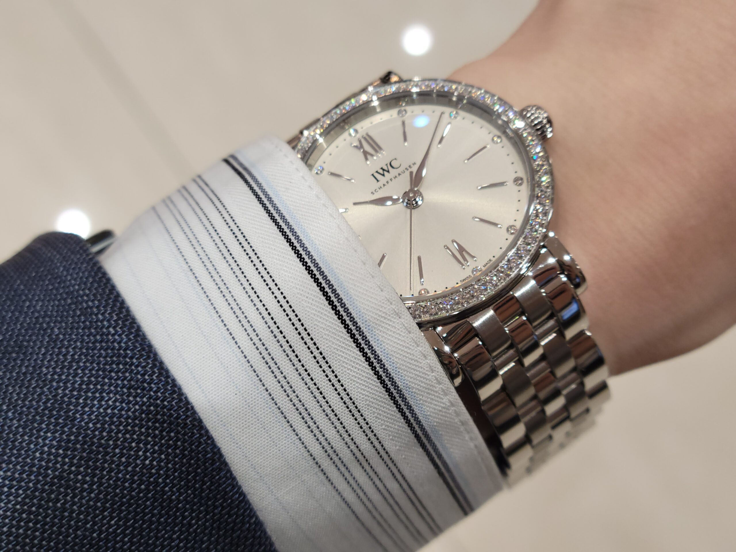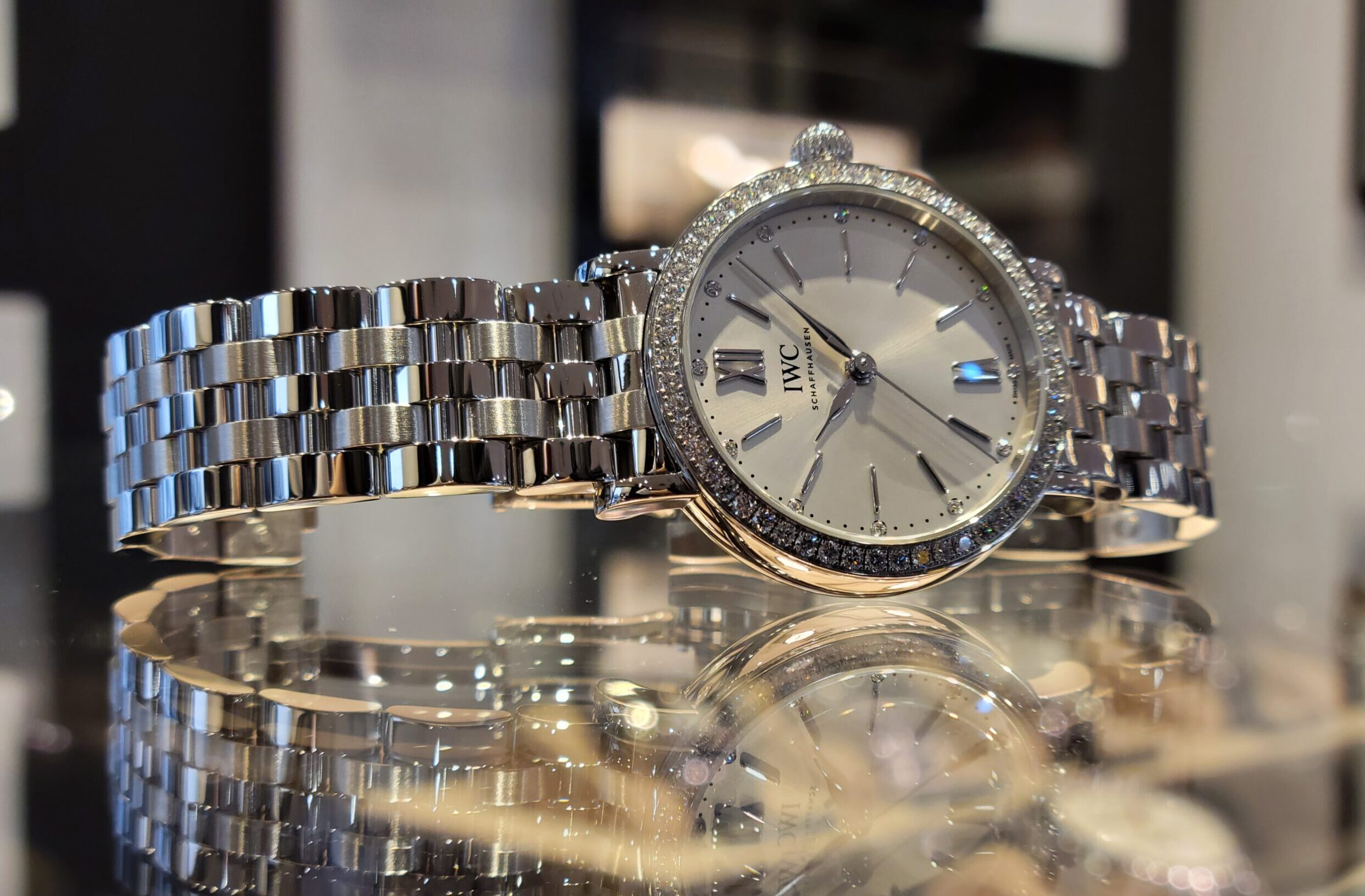 さて、今回ご紹介します時計は、ジュエリーと合わせて付けたいポートフィノ・オートマティックのレディースモデル。インデックス&ベゼル部分に、ダイヤモンドを贅沢に使用した1本です!