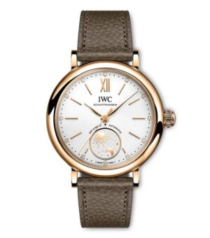バランスの取れた「ポルトギーゼ・オートマティック 42」は、3時位置にパワーリザーブ表示、反対側の9時位置にスモールセコンドが備えられています。