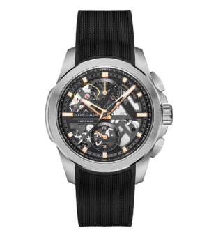 今回限定モデルとして生み出されたこの比較的小さめの40mmクロノグラフは、滑らかなブロンズ製ベゼル、ブロンズ製プッシャー、ブロンズ製ねじ込み式リューズ、カスタマイズ可能なブロンズ製ノルケイン・プレートとその素材の特性を生かした独特な風合いが特徴です。