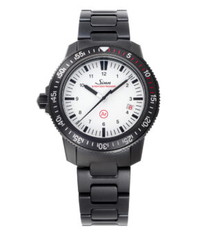 このモデルは、優れた視認性、刻時・計時精度を誇るシンプルなダイヤルを備えたシリーズの基本モデルに、60年代にドイツ空軍クロノグラフとして制式採用されたモデル155の伝統を踏襲した両方向回転式のブラックカラーベゼルを装備しています。ステンレススチール製のケース、ねじ込み式リューズ、ねじ込み式の裏蓋など必要最小限のスペックに、ドイツ軍に要求された強化アクリル製の風防を装備しています。強化アクリル製の風防は、時間のかかる風防交換を必要とせず、ポリッシュによって簡単に傷を落とすことができ、常に実戦に使用できるため指定されたスペックです。デザイン的にもクラシックな雰囲気を湛えたコストパフォーマンスの高いパイロットクロノグラフです。