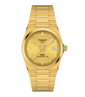 昼も夜も常に自分らしさを表現したいと願う女性に送るTissot Bellissima[ティソ ベリッシマ]。 女性の華奢な手首にフィットする26mmという小ぶりのケース径、リューズを彩るカボション、ダイアル中央から放射状に伸びていくロゼットの繊細なギョーシェ彫りとベゼルのゴドロン装飾、そしてローマ数字のインデックスが、まるでソワレの装いのように腕元を美しく彩り、エレガントな印象を演出。そのロマンチックな佇まいは、腕に纏えば一瞬にしてオーナーをスターのように輝かせます。