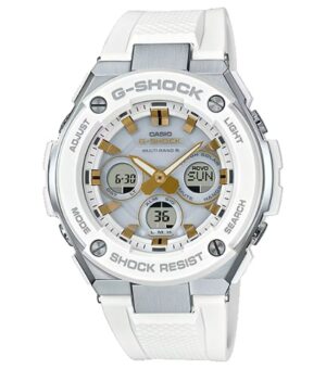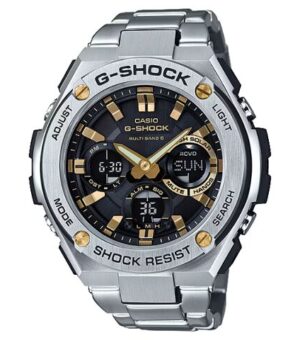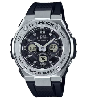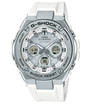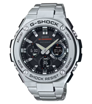 レイヤーガード構造・機能はそのままに、モジュールの小型化によりダウンサイジングを実現し、デザインバリエーションの幅を広げたG-STEELモデルです。衝撃に耐える樹脂製のインデックスは、表面に施した蒸着膜をレーザーで削り、タフネスと美しさを両立。樹脂ベゼル×ステンレスケースのカジュアルなデザインに、ブルーIPがクールさを演出します。