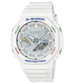1983年に誕生したG-SHOCK初代モデル“DW-5000C”のダイアルカラーを纏ったフルメタルモデルです。G-SHOCKのブランドカラーでもあり挑戦し続ける情熱を意味するレッド、高い防水性を表すブルー、ショックレジスタントを意味するイエローをあしらっています。