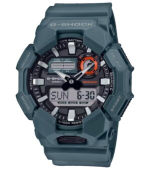 オールブラックをテーマにしたG-SHOCKです。徹底的にブラックにこだわり、ワントーンでまとめました。マットな質感とシンプルな色使いが時計自体のフォルムを際立たせています。ファッションアイテム感覚で身につけられる、ソリッド感のあるデザインが個性的なモデルです。ベゼル、バンドの主な樹脂パーツにバイオマスプラスチックを使用し、環境にも配慮しました。